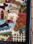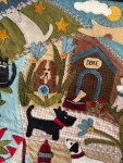 This block measures 23" x 26" finished and is jam packed with so much detail. Each time you look at it you will see something new. Very little changed from Jan's original design. I had to add my faithful friend and constant companion, Stella, to my design who sat with me while adding every single stitch. Feel free to change up one of the dogs that resembles your own pooch to make it even more special.