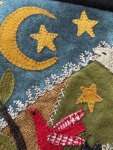 This block measures 23" x 26" finished and is jam packed with so much detail. Each time you look at it you will see something new. Very little changed from Jan's original design. I had to add my faithful friend and constant companion, Stella, to my design who sat with me while adding every single stitch. Feel free to change up one of the dogs that resembles your own pooch to make it even more special.